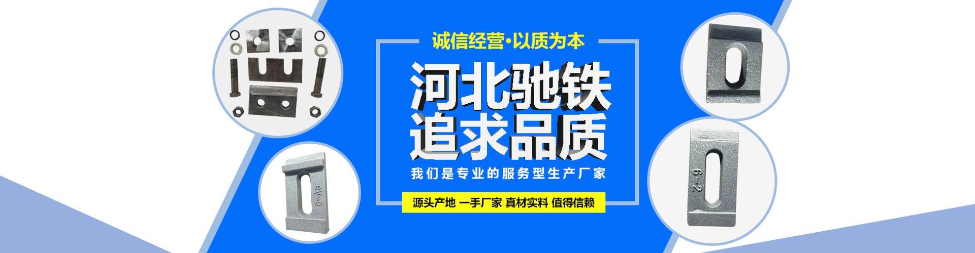 主要產(chǎn)品:鐵路配件、行車配件、工礦配件、魚尾板、道釘、壓軌器、軌道壓板、軌距拉桿、護軌扣板、T型螺栓、魚尾螺栓、彈條、軌距擋板